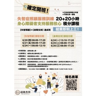 失智症照顧服務訓練20+20小時《身心障礙者支持服務》核心積分課程